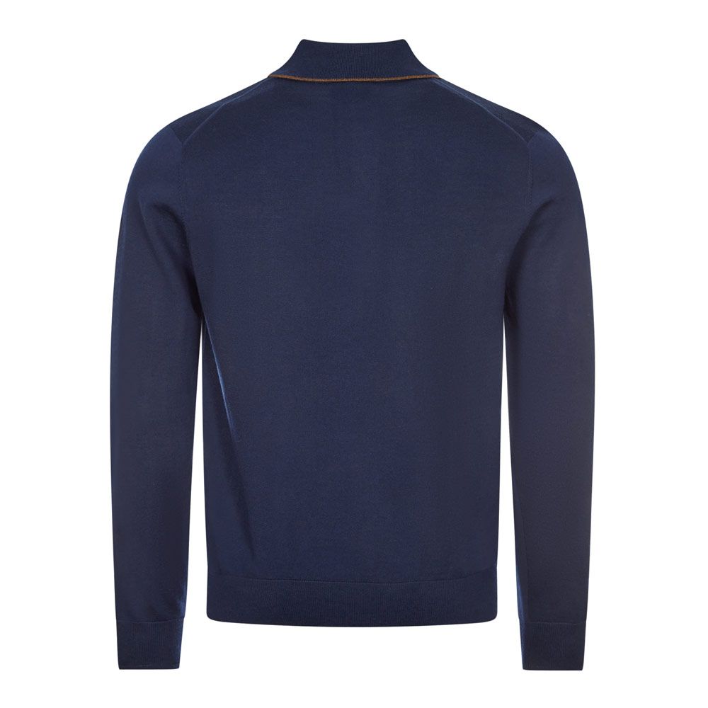 Paul Smith Long Sleeve Polo Shirt in Navy. Knitted from a 100% merino wool, Paul Smith add a opulent touch to the usual polo shirt formula.