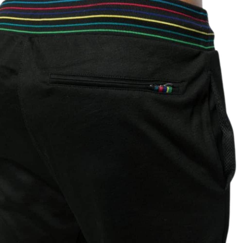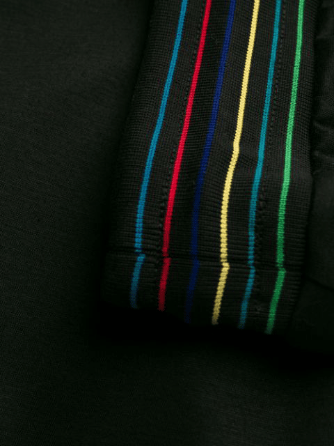 The Paul Smith slim fit stripe joggers are the ultimate comfy style staple for your casual wardrobe. sporting a bold stripe detail on the waist band in the iconic Paul Smith colours, the soft joggers have a drawstring waistband, subtle side pockets and zip ankles. Finished off the trendy design is a zip fastening rear pocket.