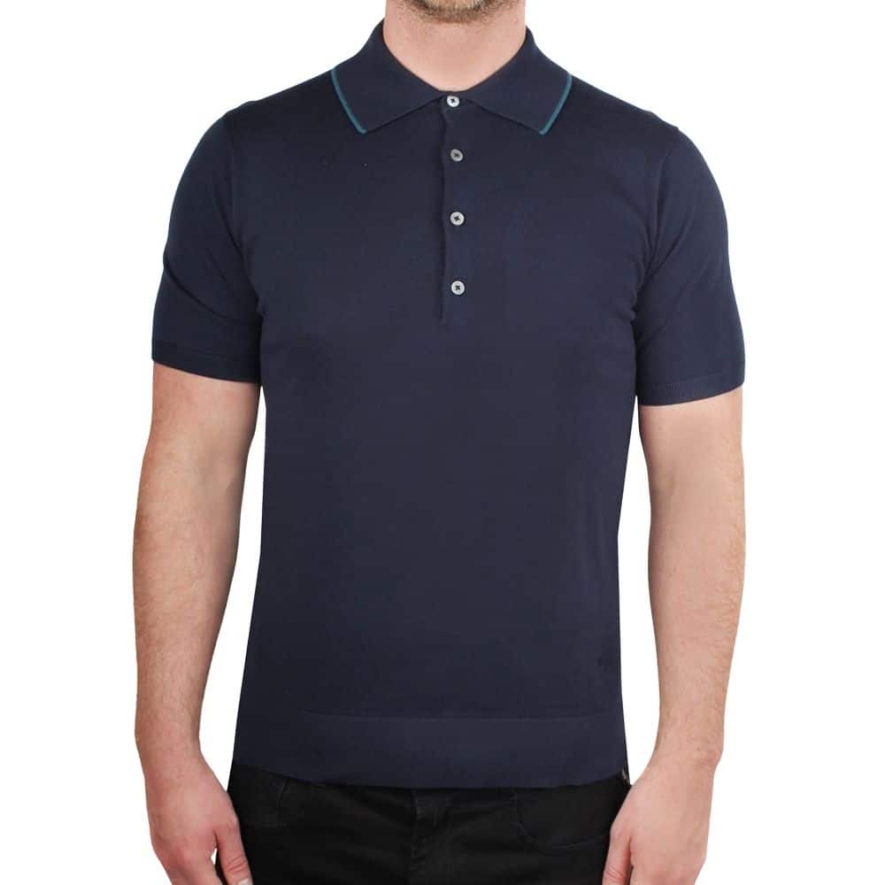 This Navy Jersey Polo Shirt from the iconic brand Paul Smith is a great addition to our new arrivals this season. The short sleeved garment features a contrasting teal stripe on the collar, allowing you to stand out in style. Beautifully constructed from pure cotton, team this polo shirt with a pair of dark wash jeans and white trainers for a casual look, or smarten it up with a jumper on top.