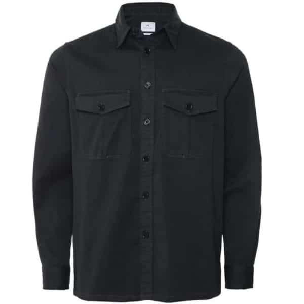 This Paul Smith black long sleeve 2 pocket black casual overshirt is a classic staple fit for your premium wardrobe to keep you looking smart whilst showing off your sense of style. In black with a fold down collar, full button fastening, long sleeves, regular fit, two chest pockets.