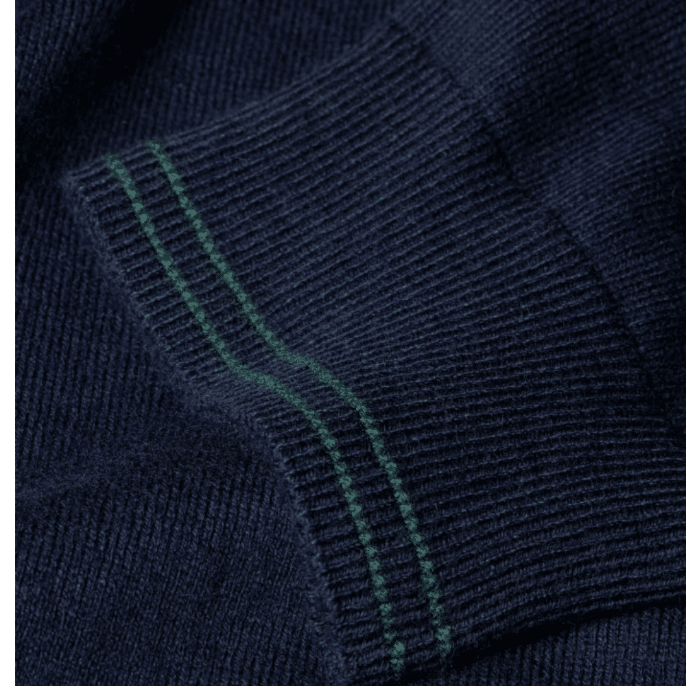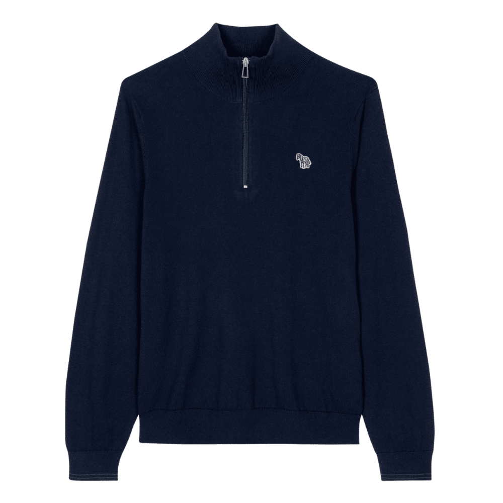 Crafted from a luxuriously soft cotton and wool-blend knitted fabric, this Navy half zip features a fastening with a silver pennant shape zip pull. Complete with our Zebra motif stitched on the chest. A versatile layering piece that will see you through many seasons to come, this half zip is expertly finished with subtle stripe detailing on the cuffs.