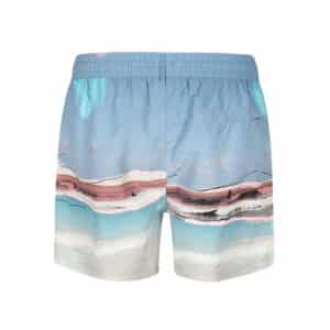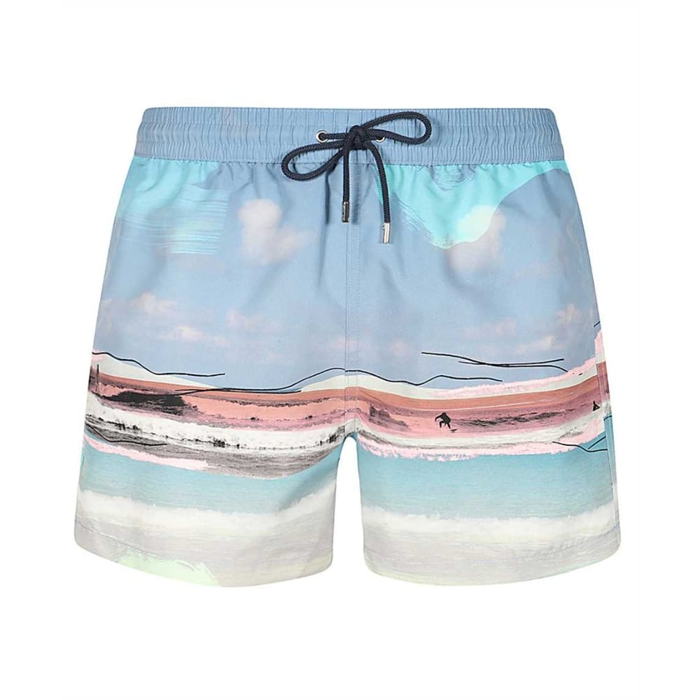 These Paul smith men’s blue swim shorts feature a ‘surfboard’ pattern throughout, with fast-drying fabric. These shorts are made using 50% Recycled Polyester and 50% Polyester. Complete with a carry bag.