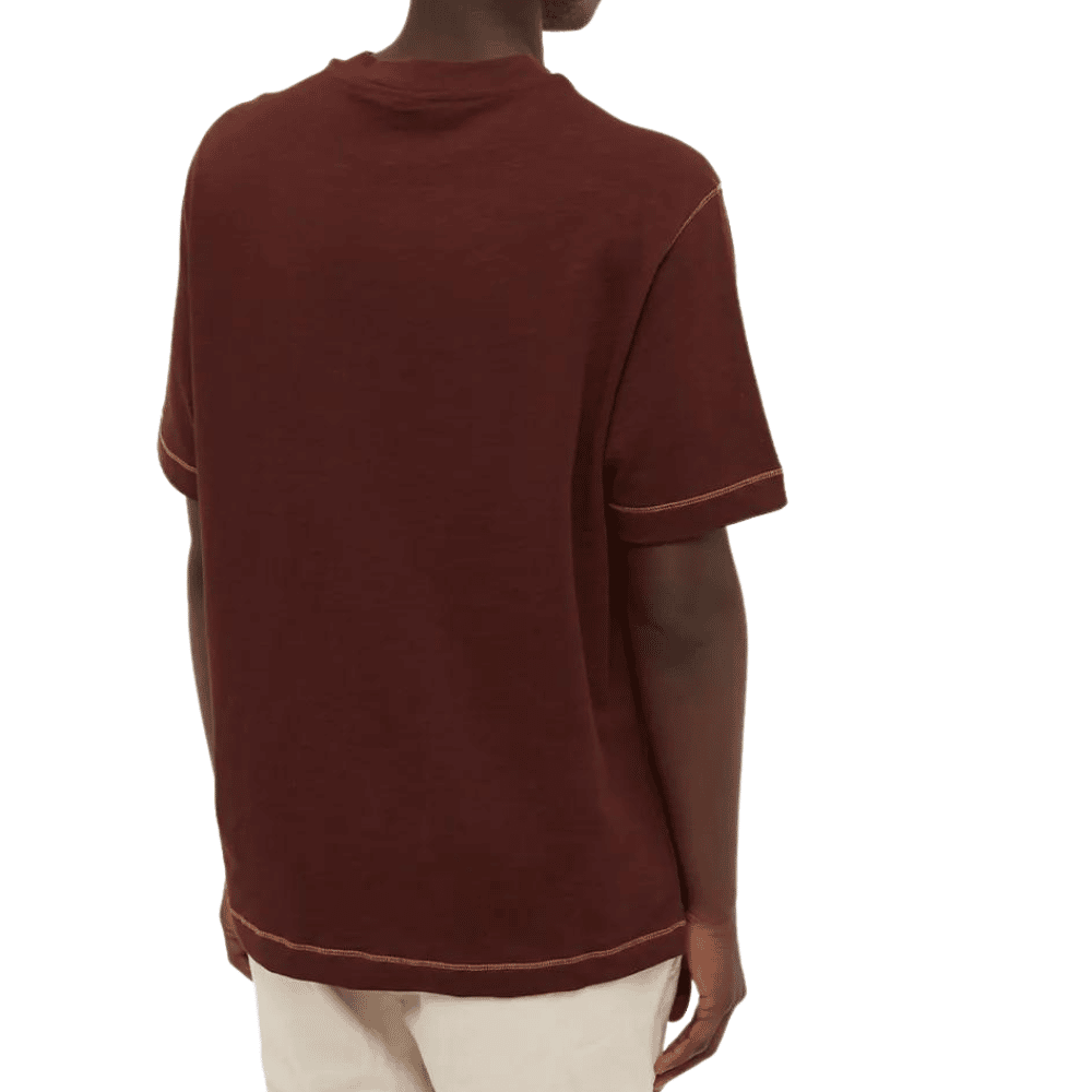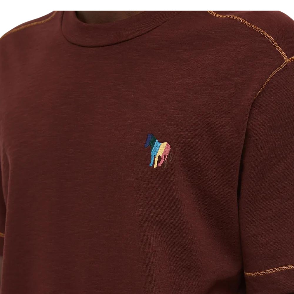 Upgrade your collection of casual wardrobe basics with this consciously crafted burgundy coloured T-Shirt from Paul Smith. Crafted from soft, organically-grown cotton, it is cut to a regular fit, then detailed with contrast stitch detailing throughout. It’s then complete with the label’s iconic zebra mascot in a reimagined large stripe design embroidered on the chest.