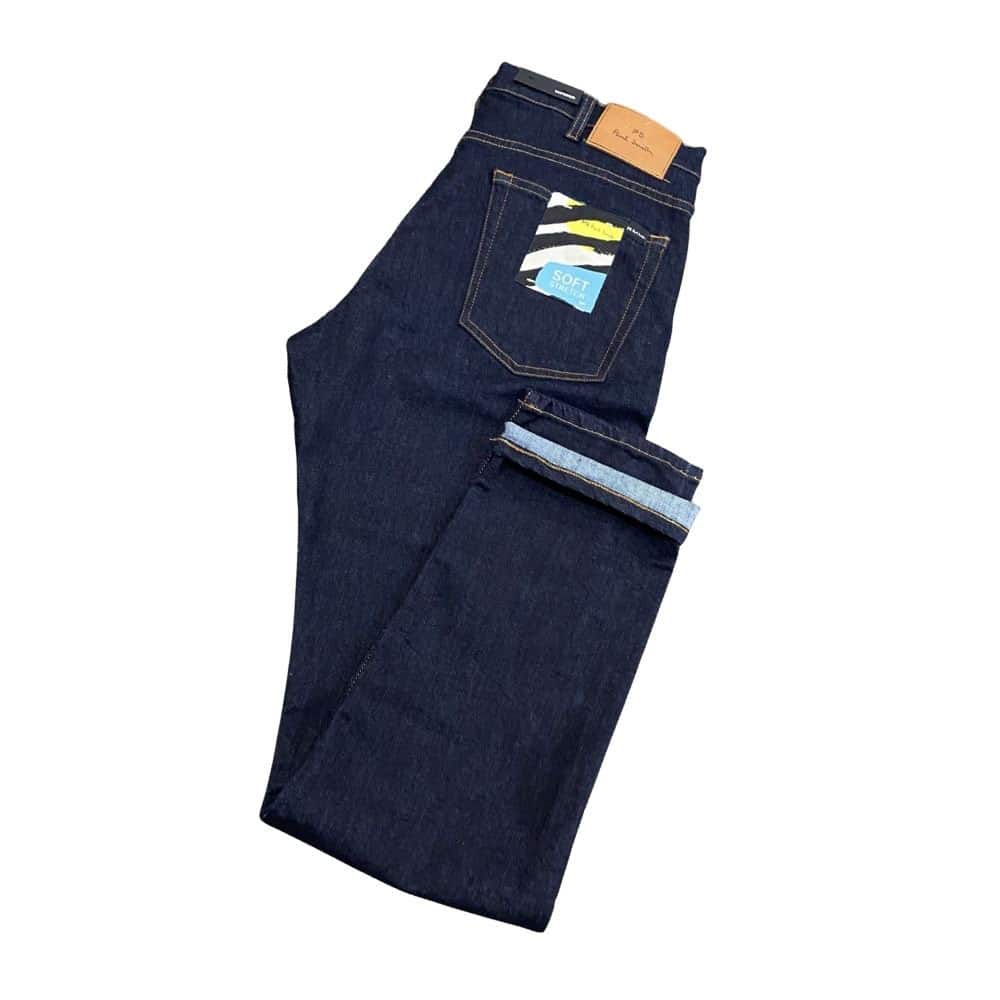 Cut to sit lower on the hip, this Paul Smith tapered jeans is made from soft stretch cotton and offers more room through the thigh and has a narrow leg opening, their traditional five-pocket design is detailed with a zip fly, and a leather PS logo waistband patch.