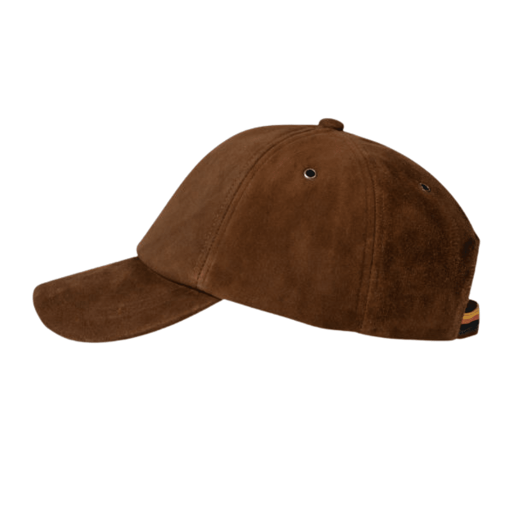 This brown suede cap features a contrasting ‘Artist Stripe’ band on the back.