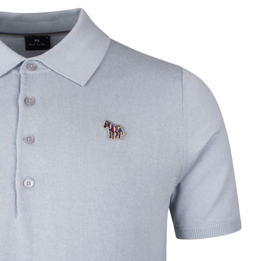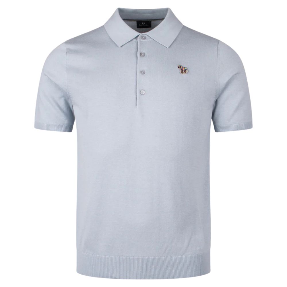 The Paul Smith Light Blue short Sleeve Knit Polo Shirt is a sophisticated take on a timeless piece. This polo is made of a soft and breathable 100% knit fabric. It has a ribbed collar and cuffs, a two-button placket for easy styling. The iconic Paul Smith multicoloured zebra symbol is discreetly stitched on the chest, offering a touch of personality. Ideal for casual and smart-casual settings.