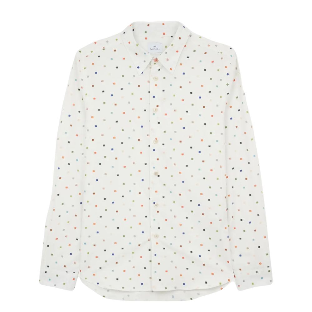 Add a touch of playful sophistication to your wardrobe with this Paul Smith tailored-fit shirt, featuring a crisp white base decorated with a subtle all-over ‘Square’ print. Crafted from premium cotton, it offers both comfort and breathability while maintaining a sharp silhouette. Finished with refined detailing, this versatile shirt works perfectly under tailoring for a smart look or paired with jeans for a modern off-duty style.