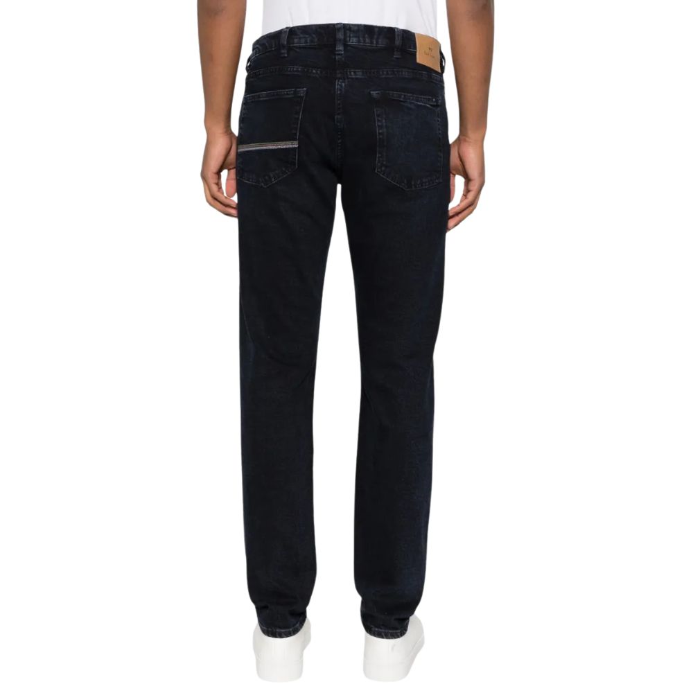 The Paul Smith Dark Wash Tapered Fit Stretch Comfort Jean is a beautiful and flexible denim option. These jeans, made from cotton and a hint touch of elastane, provide the ideal blend of comfort and flexibility. They have a modern tapered fit that provides a sleek silhouette while allowing for freedom of movement. Classic five-pocket styling, a zip fly with button closure, and discreet Paul Smith branding round out the design, making these jeans a timeless addition to any wardrobe.