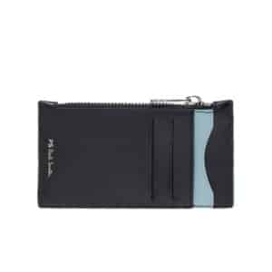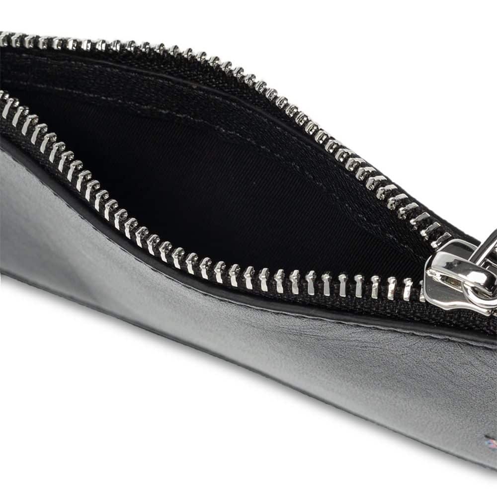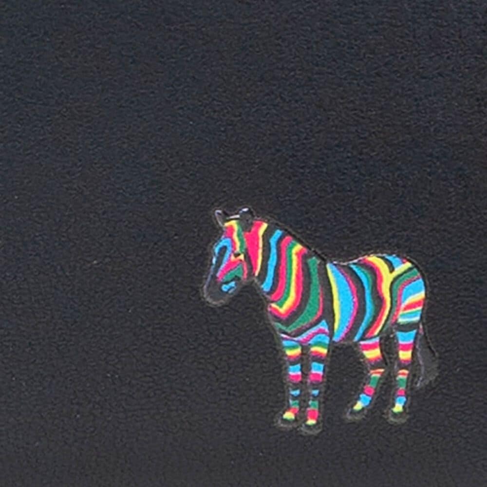 This Paul Smith Black Zip Card Case with Zebra logo in leather features four card slots and one zip pocket.