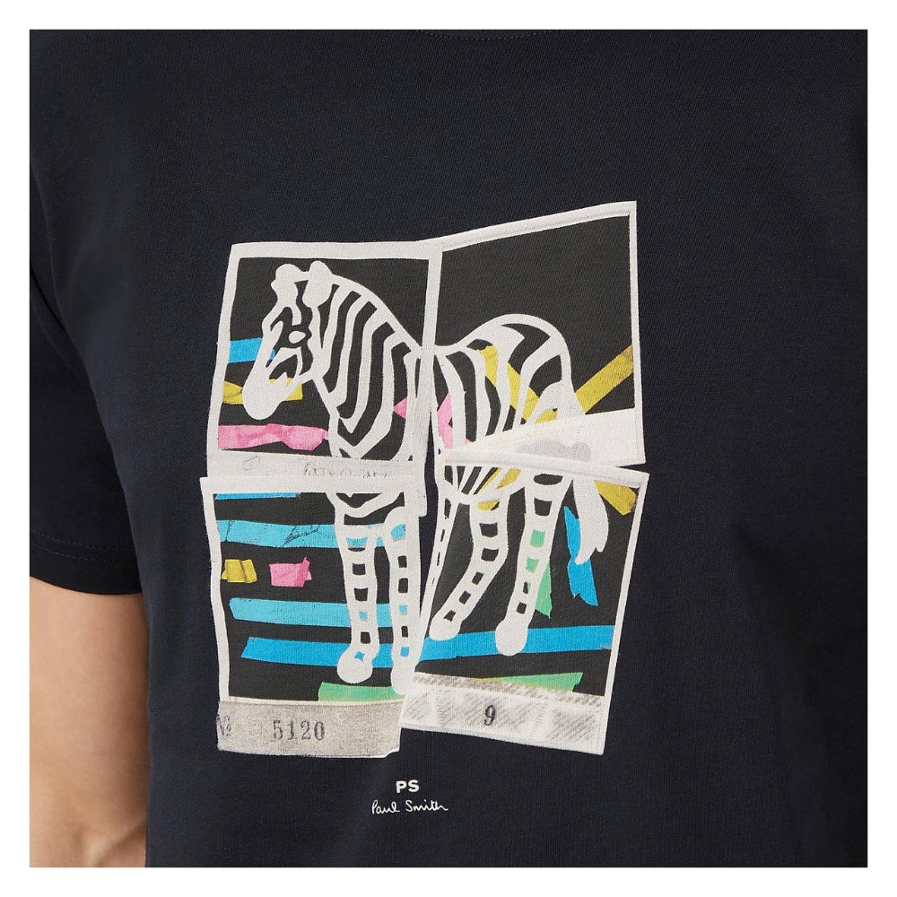 This Paul Smith Zebra Photo Navy Crew Neck T-Shirt motif takes centre stage on this t-shirt with its split photographic design. Its cotton fabric is cut to a regular fit, framed with short sleeves for warmer days and is outlined with a crew neckline.