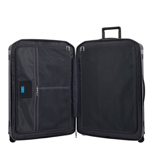 This Piquadro suitcase is a well designed Suitcase filled with everything you need for a small break away. Be sure your belongings are safe and combatable with its TSA lock and well rigid design. Features a telescopic trolley system with four easy manoeuvrable wheels, Brilliant for airport use and small getaways.