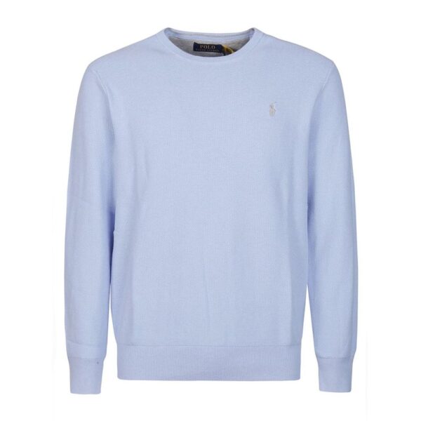 This Polo Ralph Lauren Regular men’s pullover, in light blue pure cotton knit with honeycomb stitch, ribbed neckline and iconic Polo Ralph Lauren pony embroidered on the front.