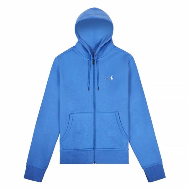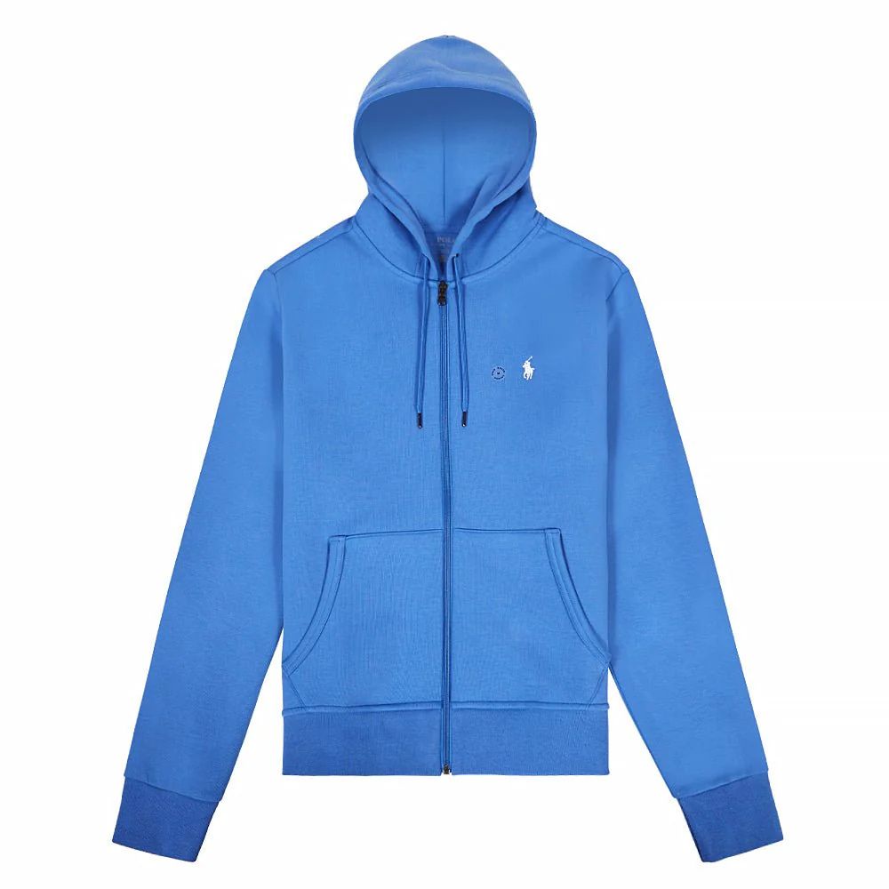 This blue zipped hoodie from Polo Ralph Lauren is the perfect transitional piece that boasts both comfort and versatility. In a casual blue colourway, the classic sweater design features a fixed drawstring hood and zip closure with a split kangaroo pocket and White pony.