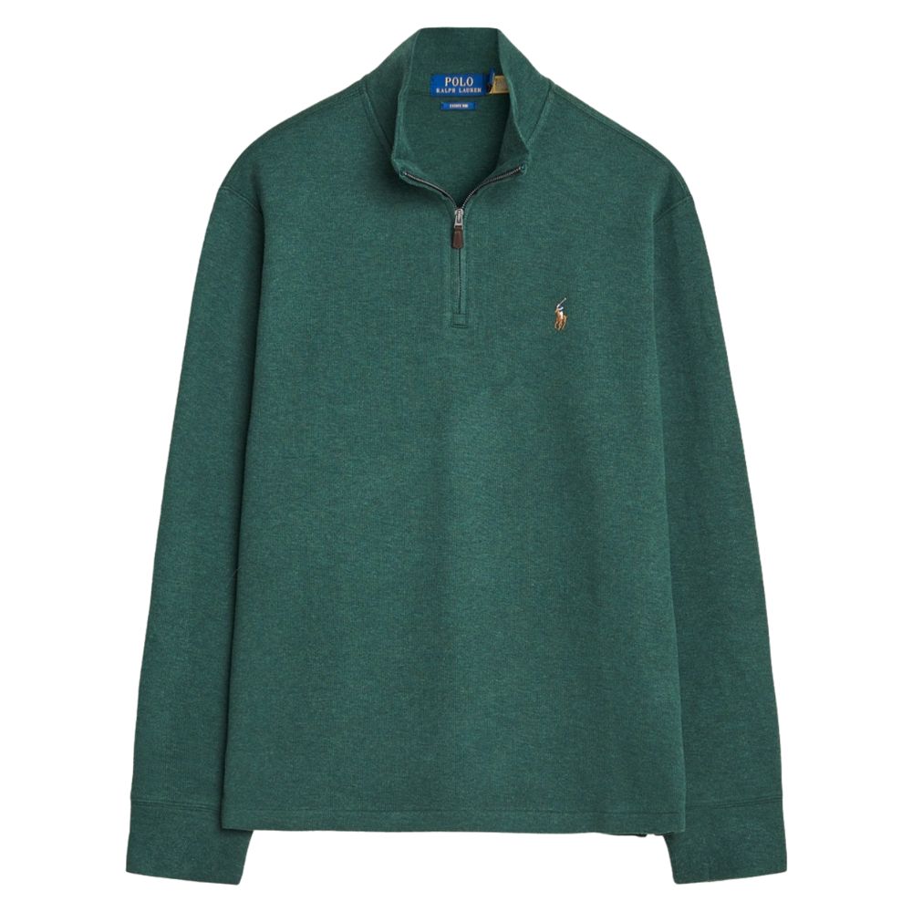 Casual comfort with a refined finish. Made from smooth double-knit fabric, this green Quarter-Zip offers warmth, softness, and a structured feel. Its clean design and subtle Polo detailing make it a versatile layer for relaxed yet polished everyday style.