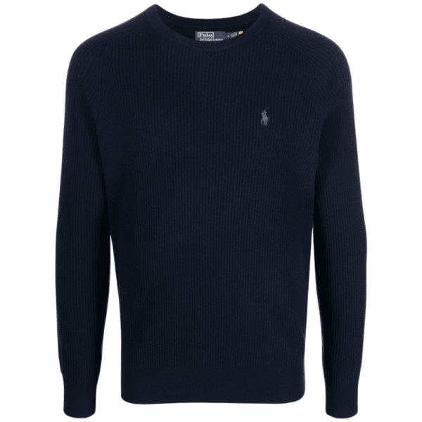 Navy Cotton Sweater By Ralph Lauren With A Contrast Logo On Left Chest