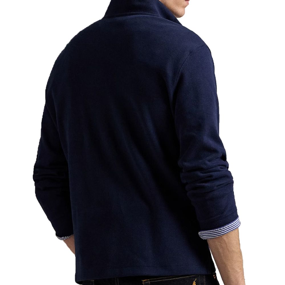 Polo Ralph Lauren stays true to its preppy roots with this quarter-zip navy sweatshirt. Crafted from a soft cotton knit, it’s coloured classic navy, complete with snug ribbed cuffs and the brand’s embroidered pony on the chest.