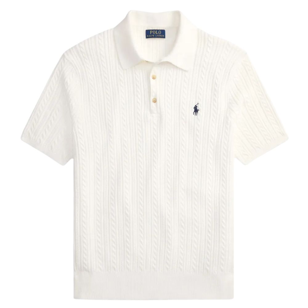 A sophisticated take on a casual staple. Crafted from finely ribbed cotton knit, this white knitted polo shirt combines texture with comfort for a refined look. Finished with a classic collar and signature Polo detailing, it’s a versatile piece that transitions effortlessly from smart-casual to relaxed elegance.