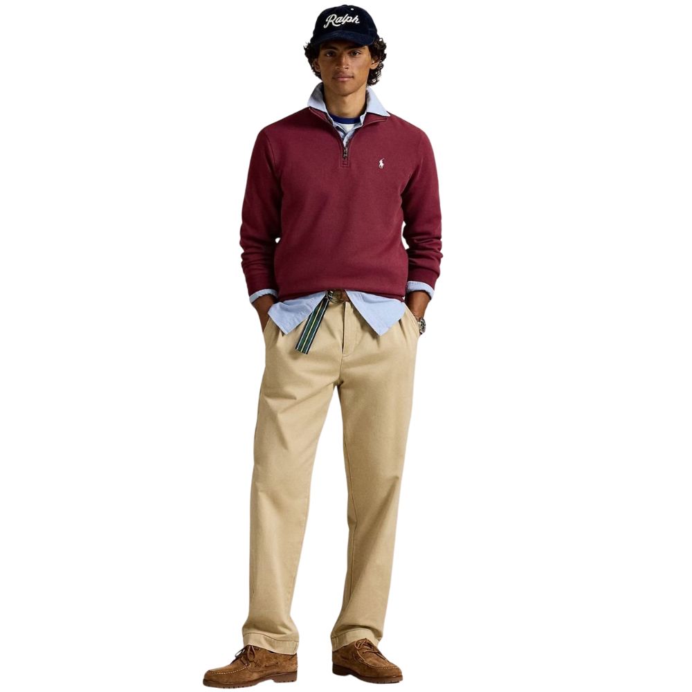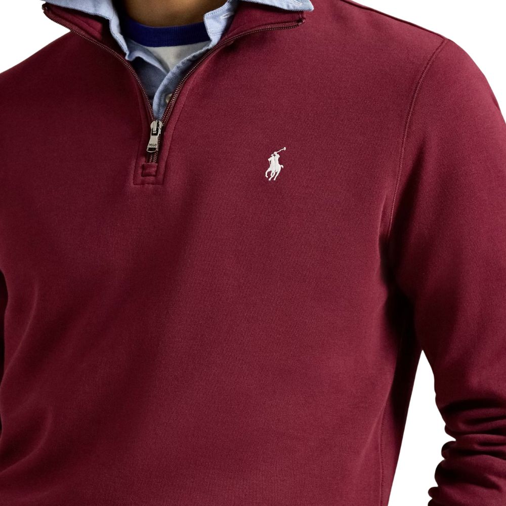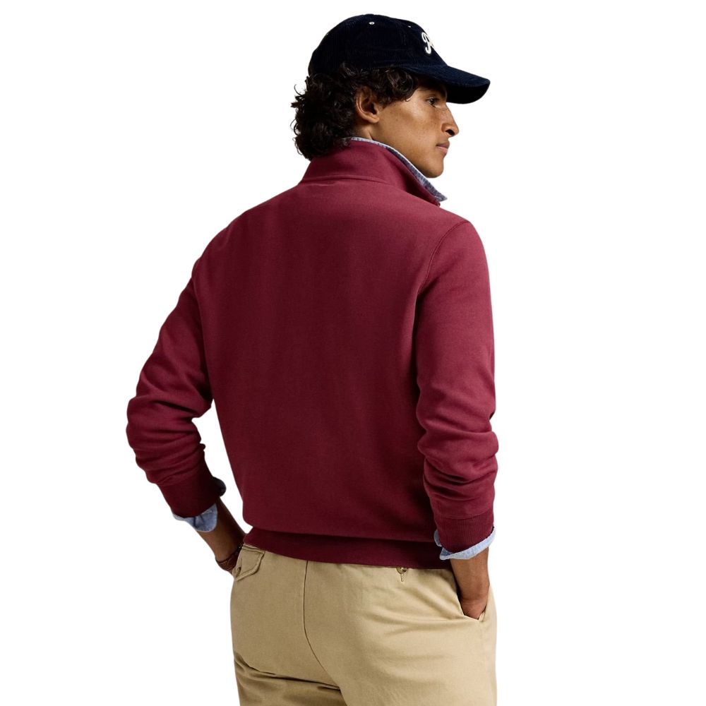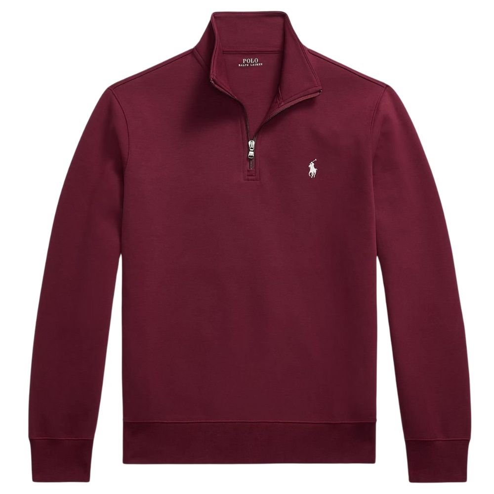 Casual comfort with a refined finish. Made from smooth double-knit fabric, this wine Quarter-Zip offers warmth, softness, and a structured feel. Its clean design and subtle Polo detailing make it a versatile layer for relaxed yet polished everyday style.