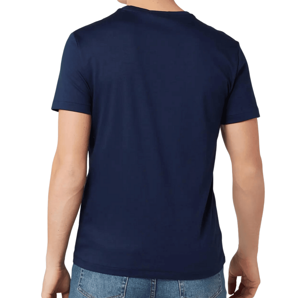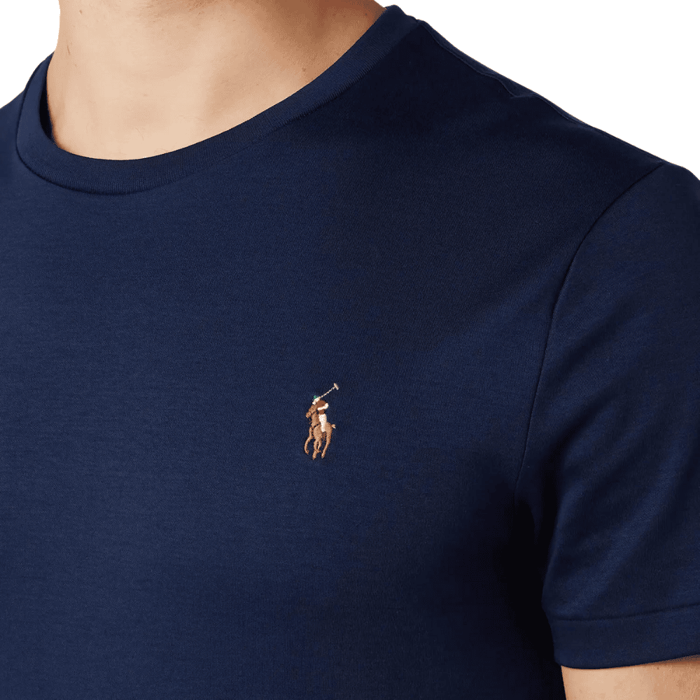 The custom slim-fit Ralph Lauren t-shirt is made from 100% cotton material. The navy top features a ribbed crew neckline, short sleeves and is finished off with the signature logo pony embroidered on the chest.
