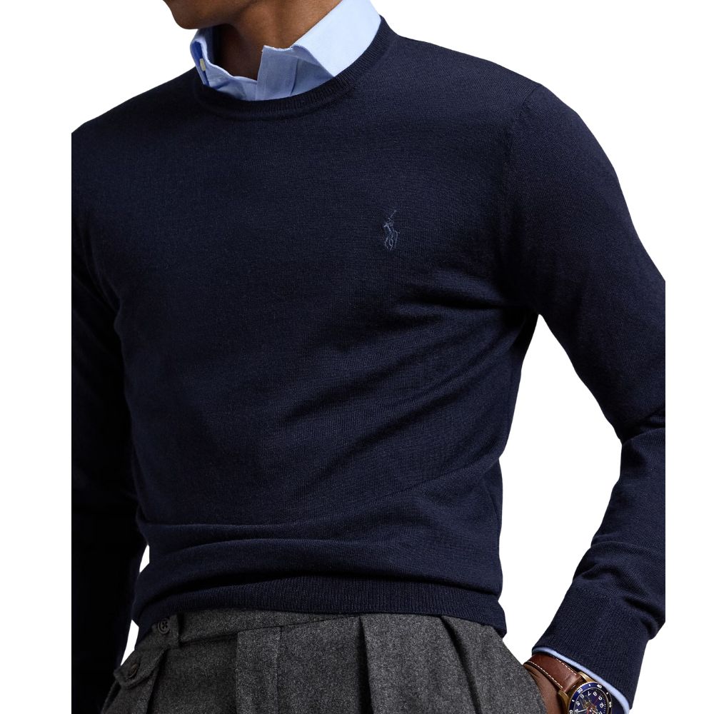 A refined layering essential. Crafted from luxuriously soft and washable merino wool, this navy crewneck jumper provides lightweight warmth and breathability with a smooth, comfortable feel. Its timeless design makes it a versatile piece for both smart and casual occasions.