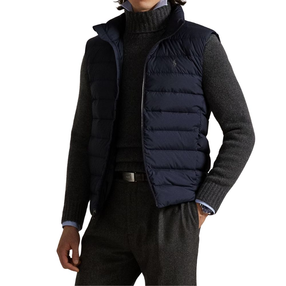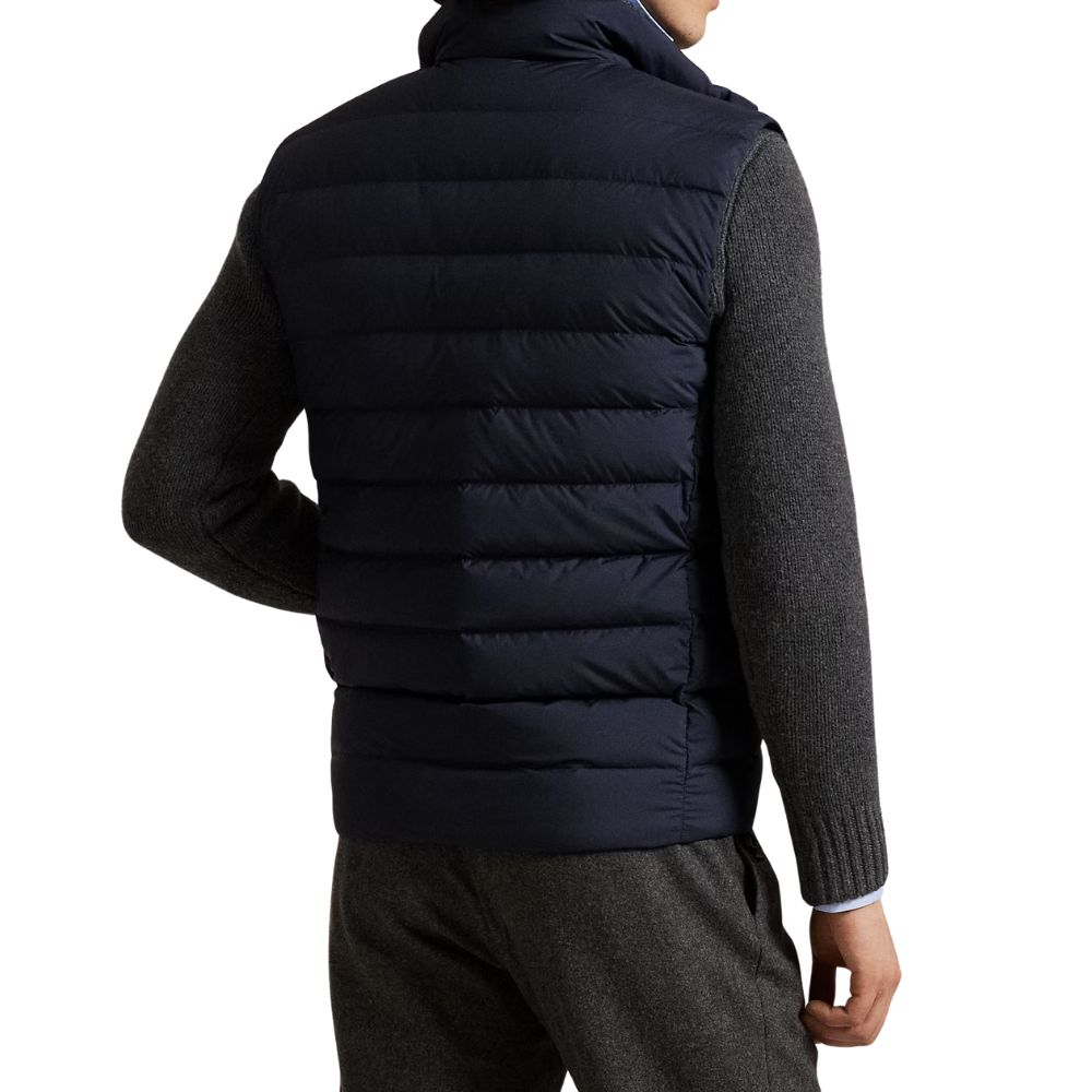 This navy gilet is crafted from a matte water-repellent fabric and insulated with 650-fill-power down. It also packs into its own pocket for on-the-go convenience.