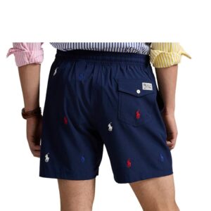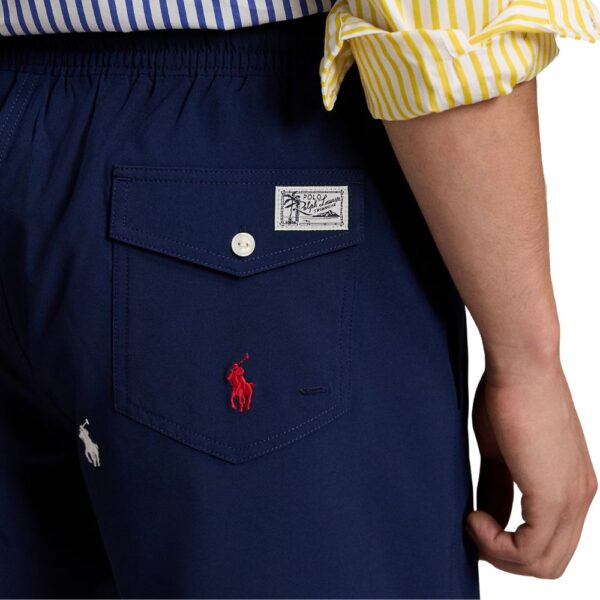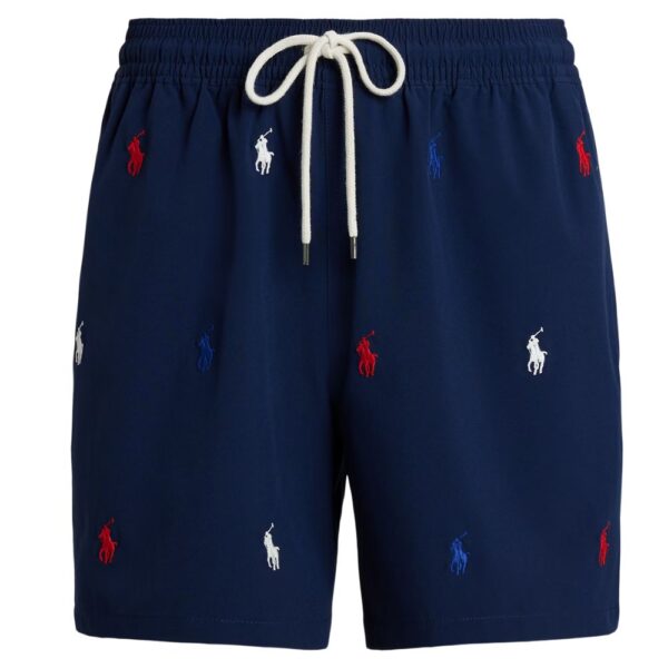 These navy mesh-lined swim shorts are woven with extra stretch for added comfort and feature an embroidered motif of our iconic Pony
