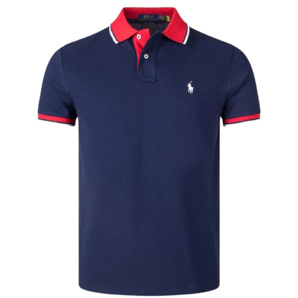 An American style standard since 1972, the Polo shirt has been imitated but never matched. Over the decades, Polo Ralph Lauren has re-imagined his signature style in a wide array of colours and fits, yet all retain the quality and attention to detail of the iconic original. This version is cut slim through the body and washed for added softness. With a red and white collar.