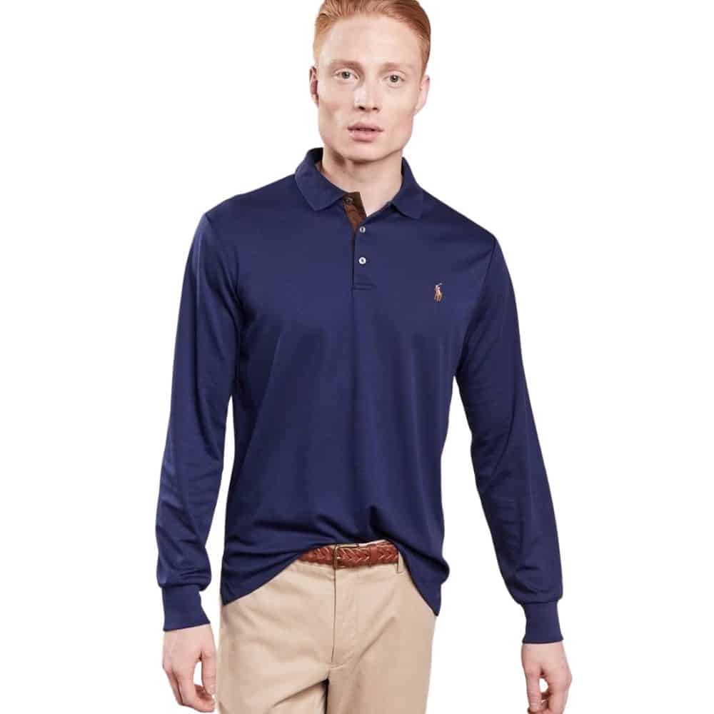 Polo shirts by Polo Ralph Lauren are a wardrobe essential, this gorgeous French Navy long sleeve polo is cut from super-soft, luxurious cotton fabric in a custom slim fit. Featuring 3 buttons on the neck the iconic multi-coloured Polo Ralph Lauren pony embroidered on the chest.