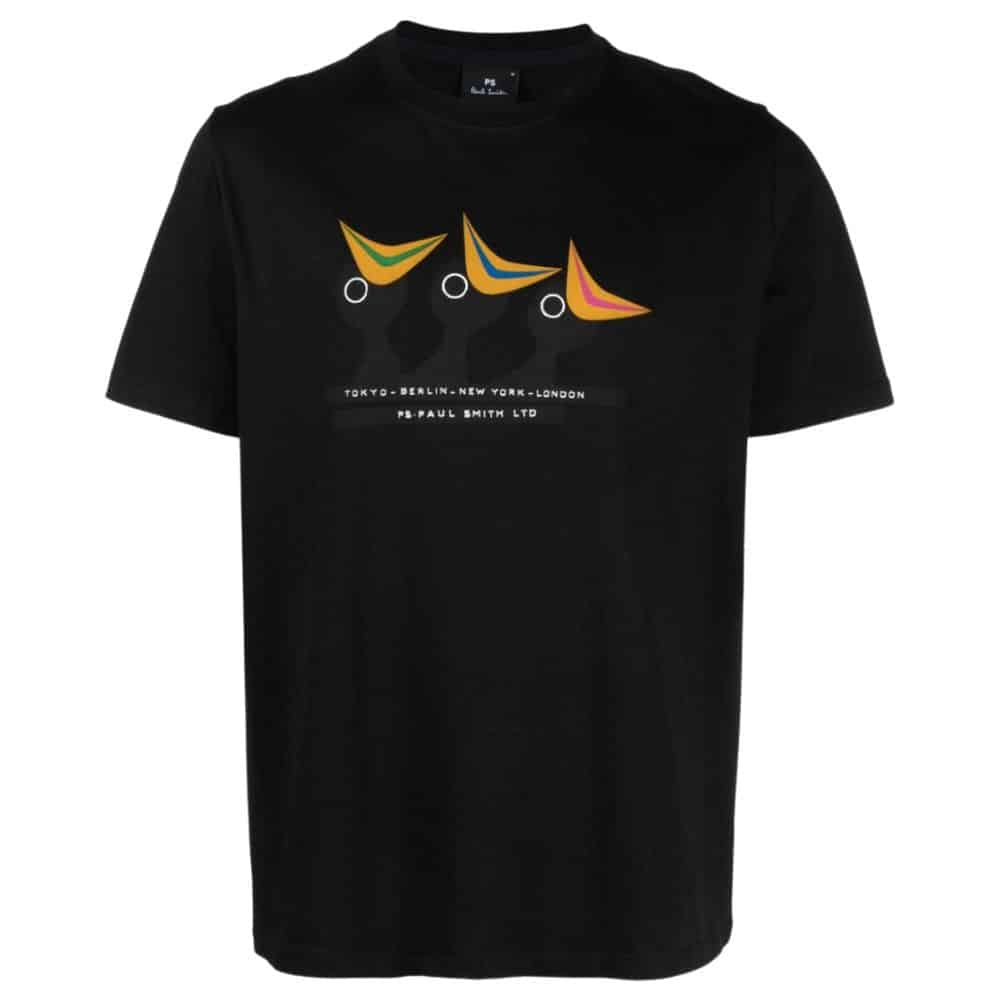 This Paul Smith black regular fit pure cotton T-Shirt with a Birds print. Ideal for styling with jeans and trainers.