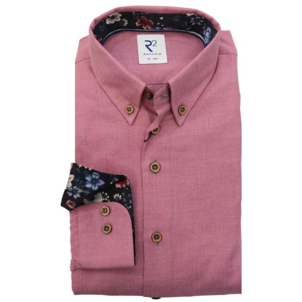 This R2 Amsterdam Pink shirt features an Autumn floral design on the inside of the collar and cuffs. The shirt has single cuffs and contrasting buttons for stylish detail.
