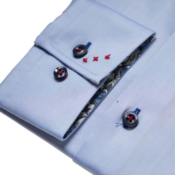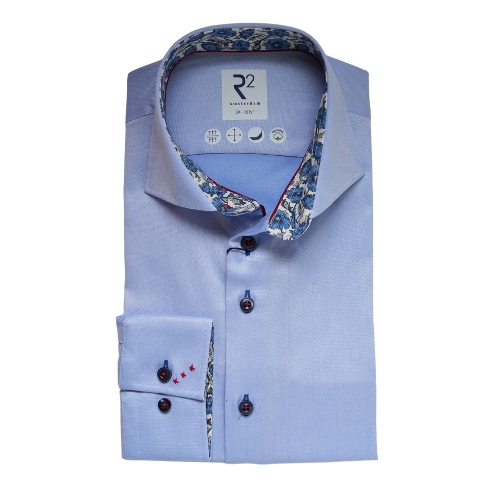 R2 Amsterdam Floral Trim Cuffs & Collar Light Blue Shirt
