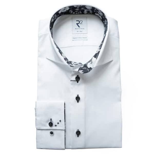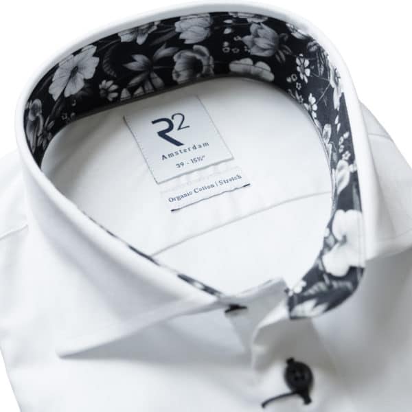 This R2 Amsterdam shirt features a floral design on the inside of the collar and cuffs. The shirt has single cuffs and contrasting buttons for stylish detail.