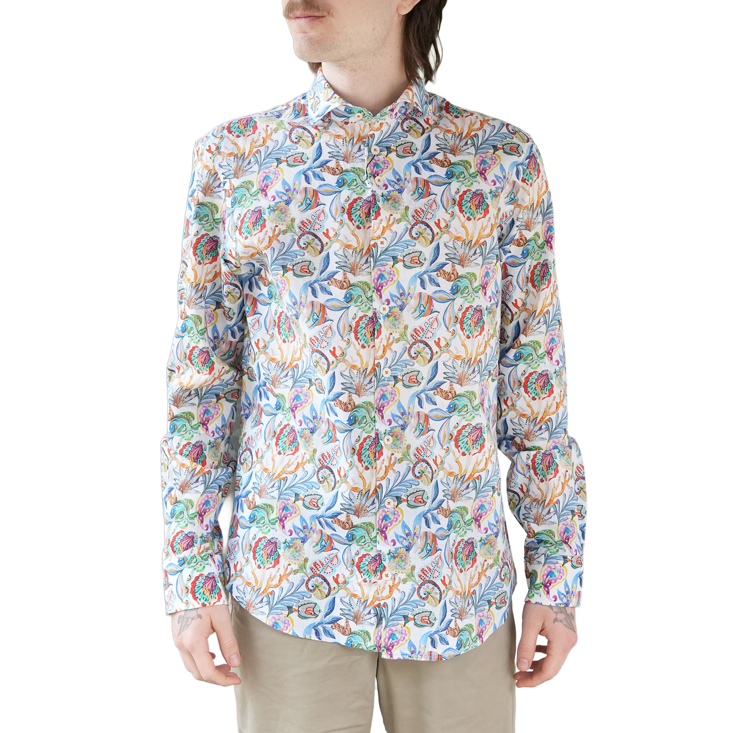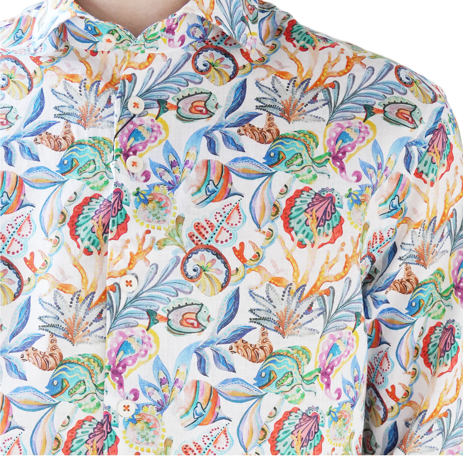 R2 Amsterdam Tropical Fish Pattern Linen Mix Shirt