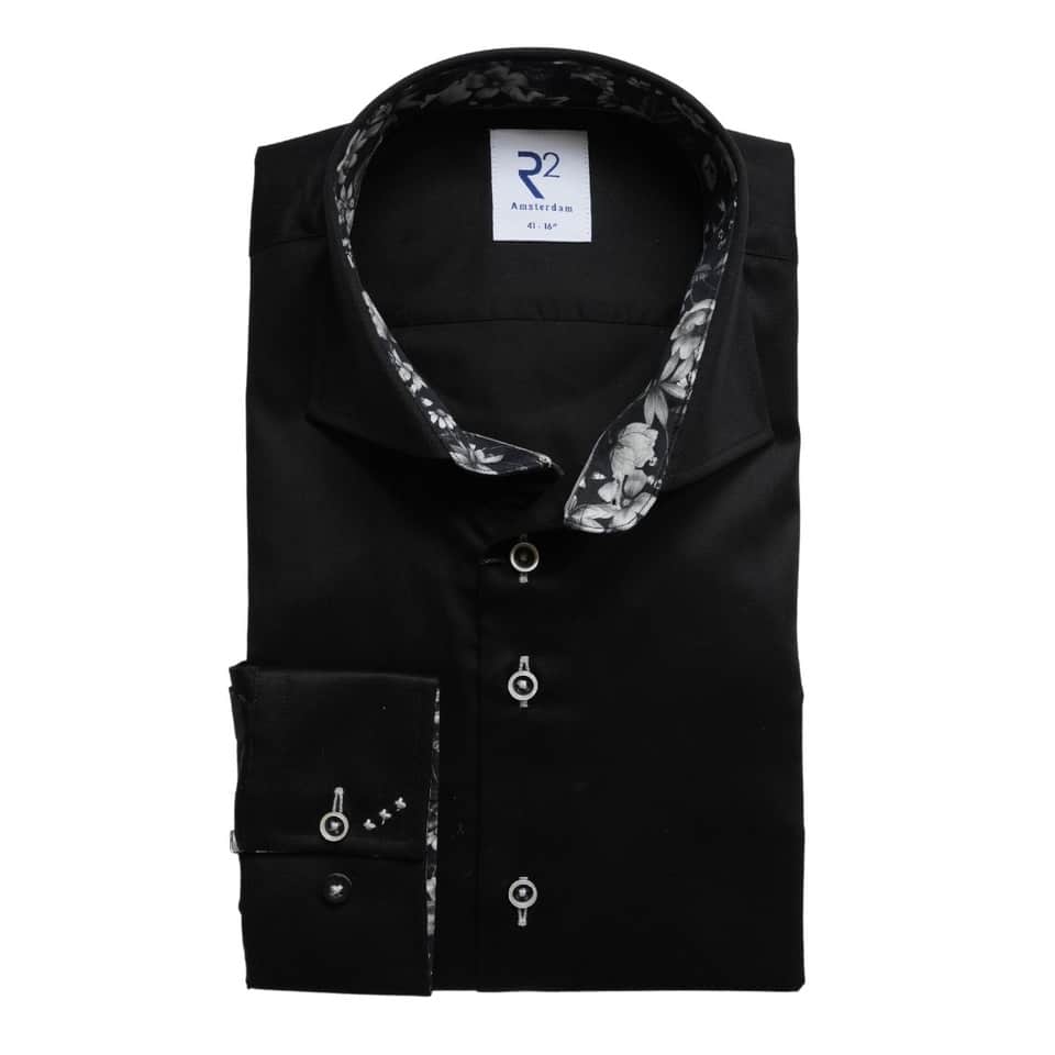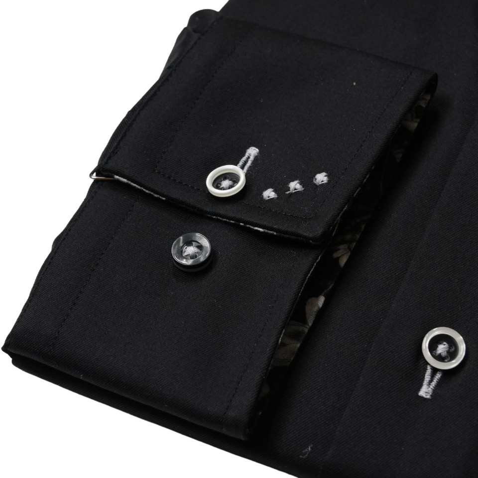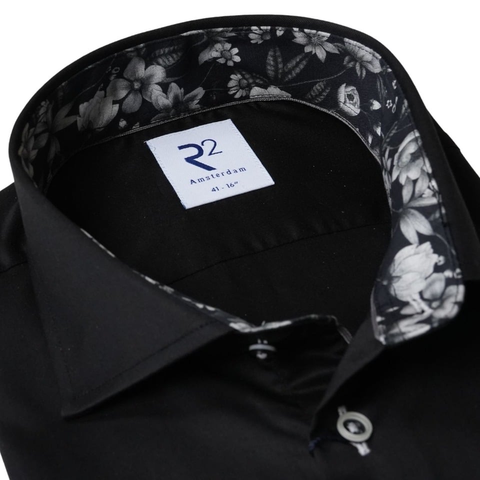 This R2 Amsterdam shirt features a floral design on the inside of the collar and cuffs. The shirt has single cuffs and contrasting buttons for stylish detail.