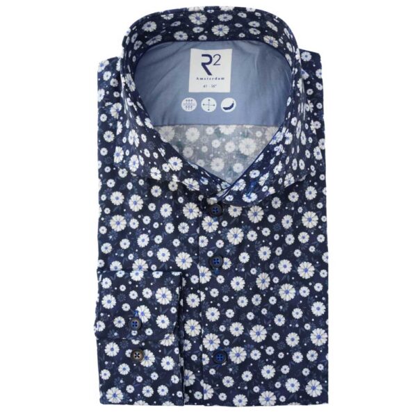 Elevate your wardrobe with the R2 Amsterdam Navy Shirt with an all over floral pattern for a touch of modern elegance. Crafted from premium fabric, it offers a comfortable fit and impeccable style, perfect for any business occasion.