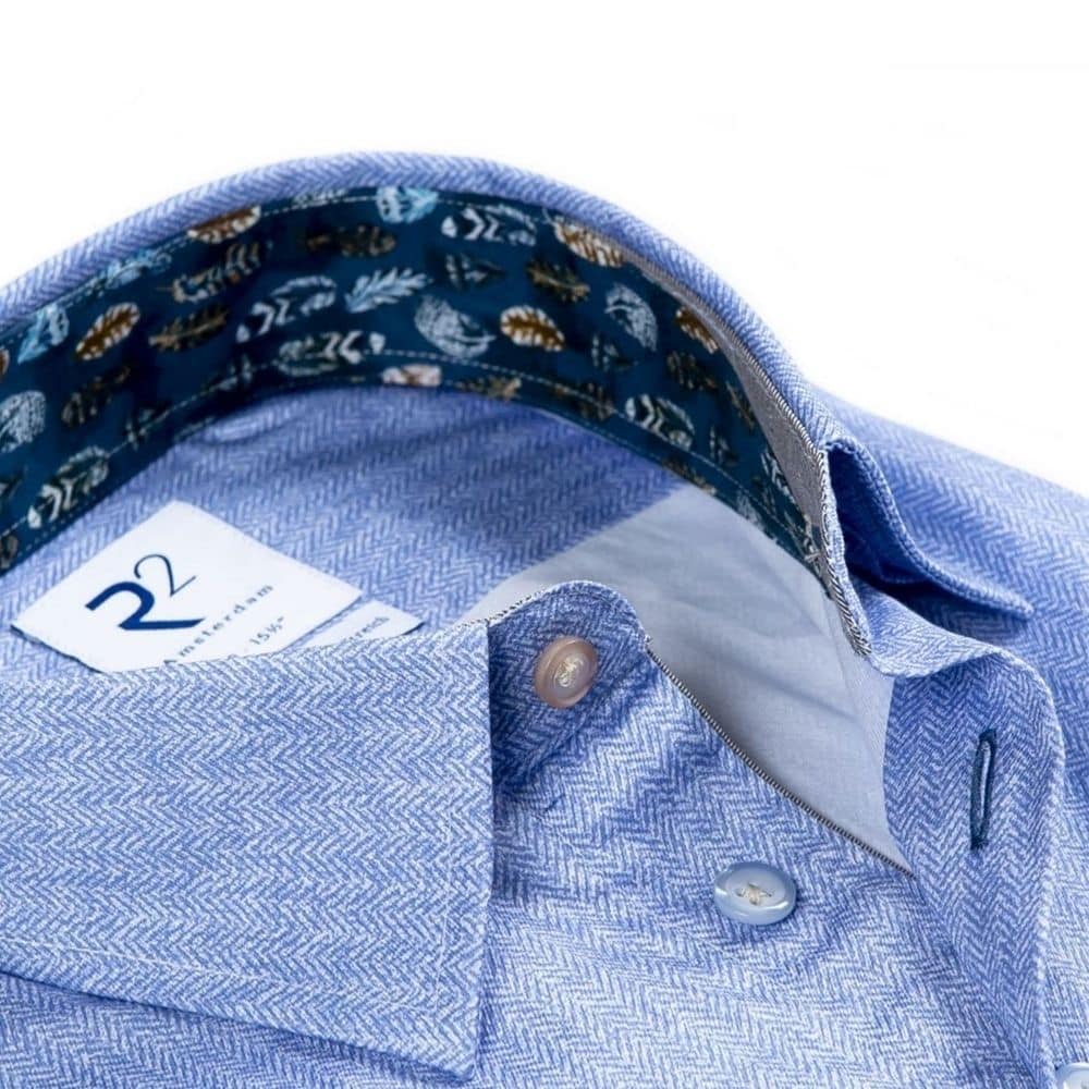We belive this R2 shirt can look great worn casually and in a smart setting. The Light blue herringbone pattern can really add a depth to your outfit!