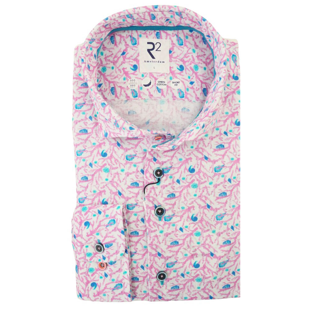 Elevate your wardrobe with the R2 Amsterdam Pink Shirt with Floral Trim. This sophisticated piece features a Pink Floral trim, accented by delicate trim for a touch of modern elegance. Crafted from premium fabric, it offers a comfortable fit and impeccable style, perfect for any business occasion.