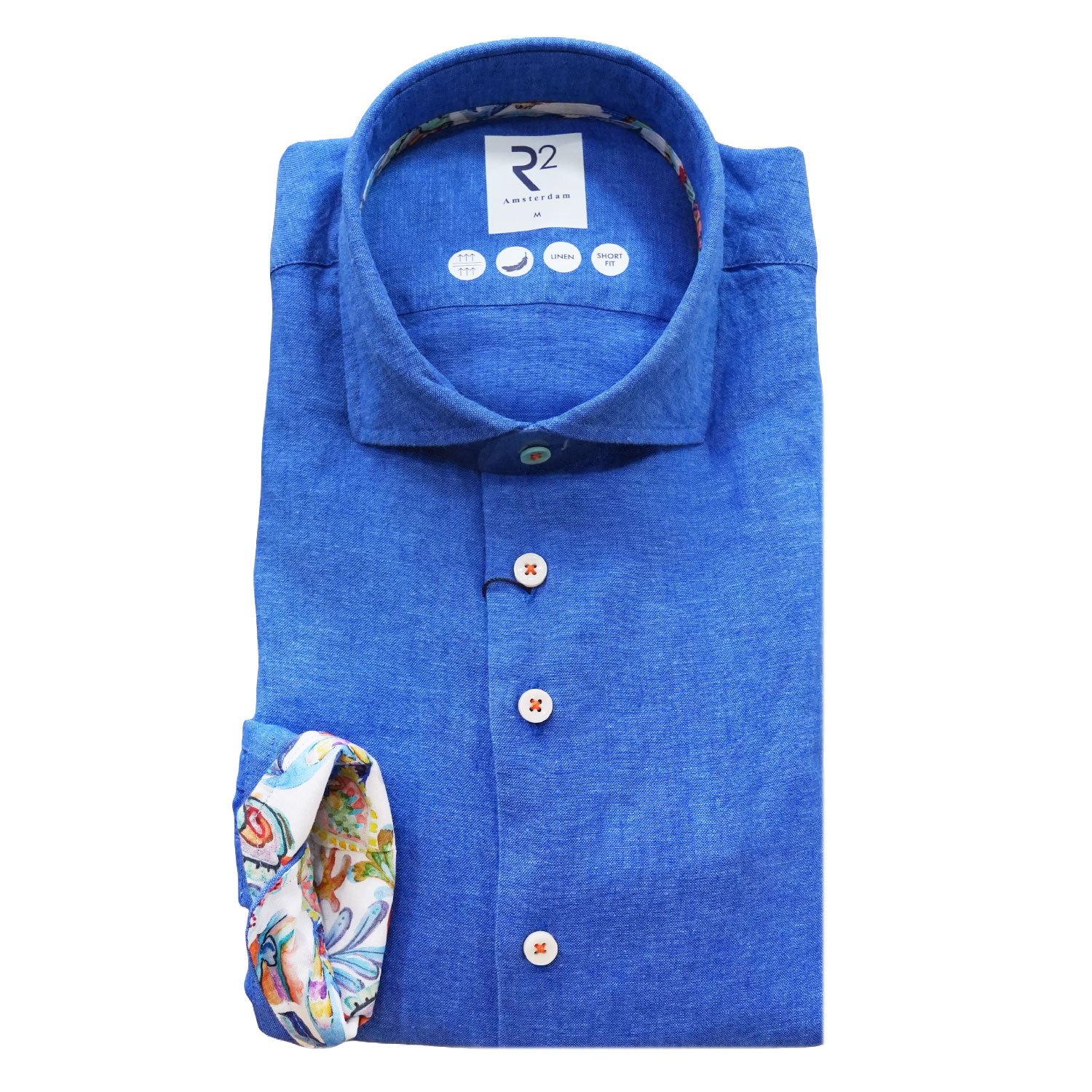 Crafted from breathable linen for a light, airy feel, this  blue linen shirt is perfect for warm-weather comfort – finished with R2 Amsterdam’s signature attention to premium fabrics, precise tailoring, and refined detailing for lasting quality. Style it casually untucked with a pair of trendy chinos or shorts.