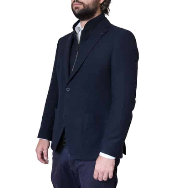 This Roy Robson Jacket is a modern two button style made from a wool blend melton cloth, with a detachable insert for added protection in colder temperatures. The jacket has patch pockets as well as chest and interior pockets for storage, double vents at the back for movement. The insert features a bomber style collar, which can be detached for a more classic style.