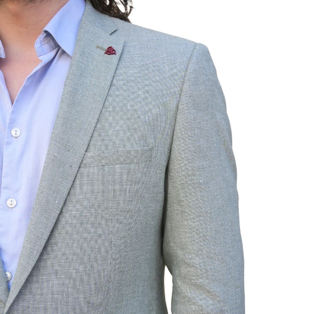This slim fit green cotton and linen blend jacket by Roy Robson has rich colourful weave. Stylish and flexible featuring patch pockets, side vents, full lining and a soft feel giving this Jacket a distinctive character.