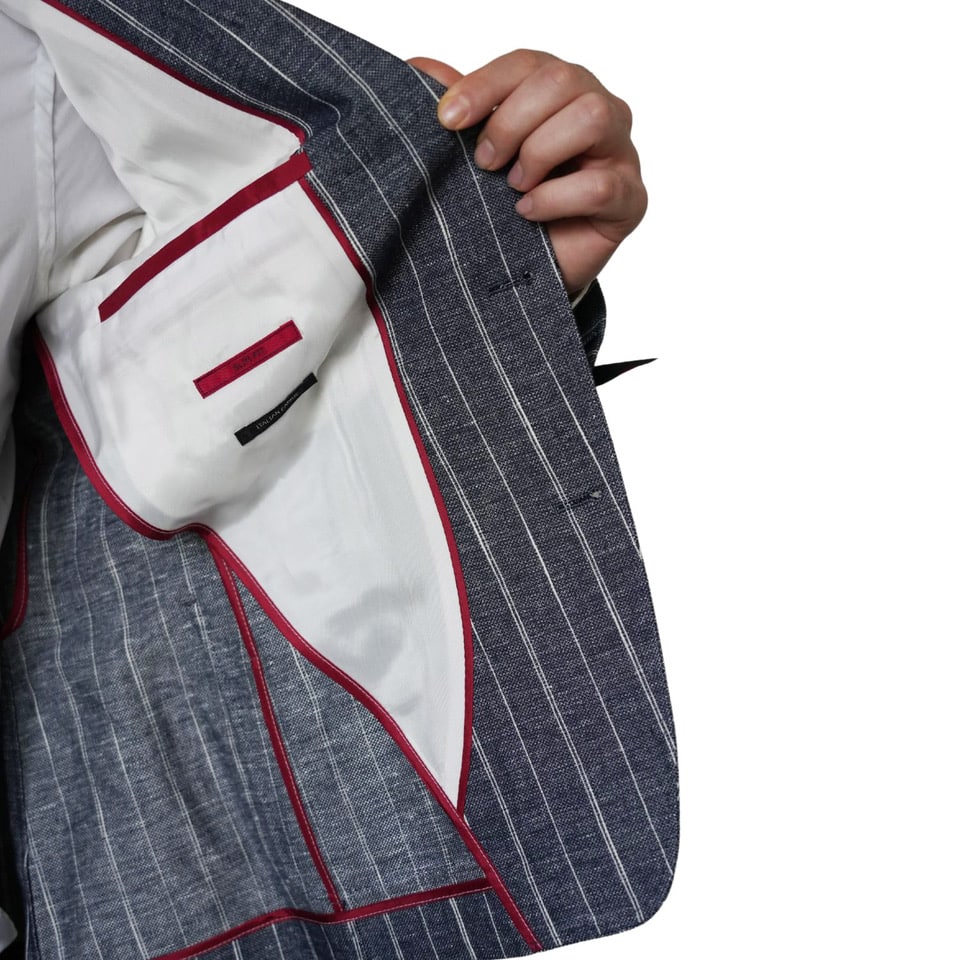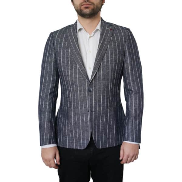 This jacket by Roy Robson is a great piece for spring or summer. It is made from a linen blend fabric with a stone and stripe throughout the jacket. It is cut to a slim fit for a modern shape and the back is double vented for ease of movement and comfort. Pair with a navy chinos or a dark wash jeans.