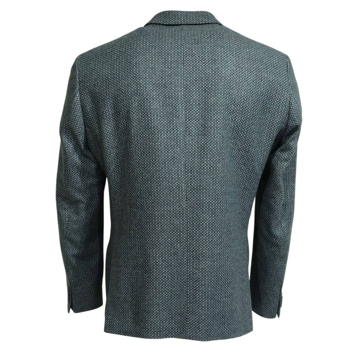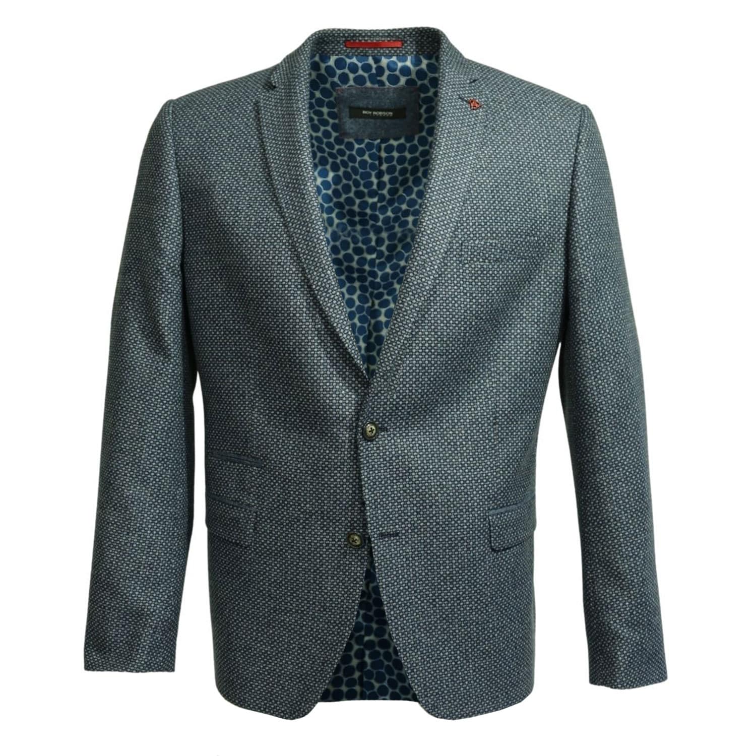 This Roy Robson navy small check jacket is constructed by a wool mix. It features traditional ticket pocket giving, pair with white shirt and dark blue jeans for a casual look.