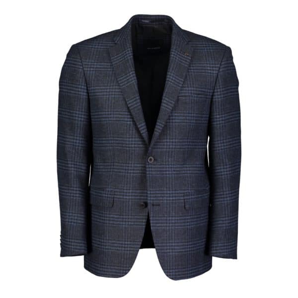This Roy Robson regular fit navy jacket features a glen check pattern. Stylish and flexible featuring patch pockets, side vents, full lining and a soft feel giving this jacket a distinctive character.