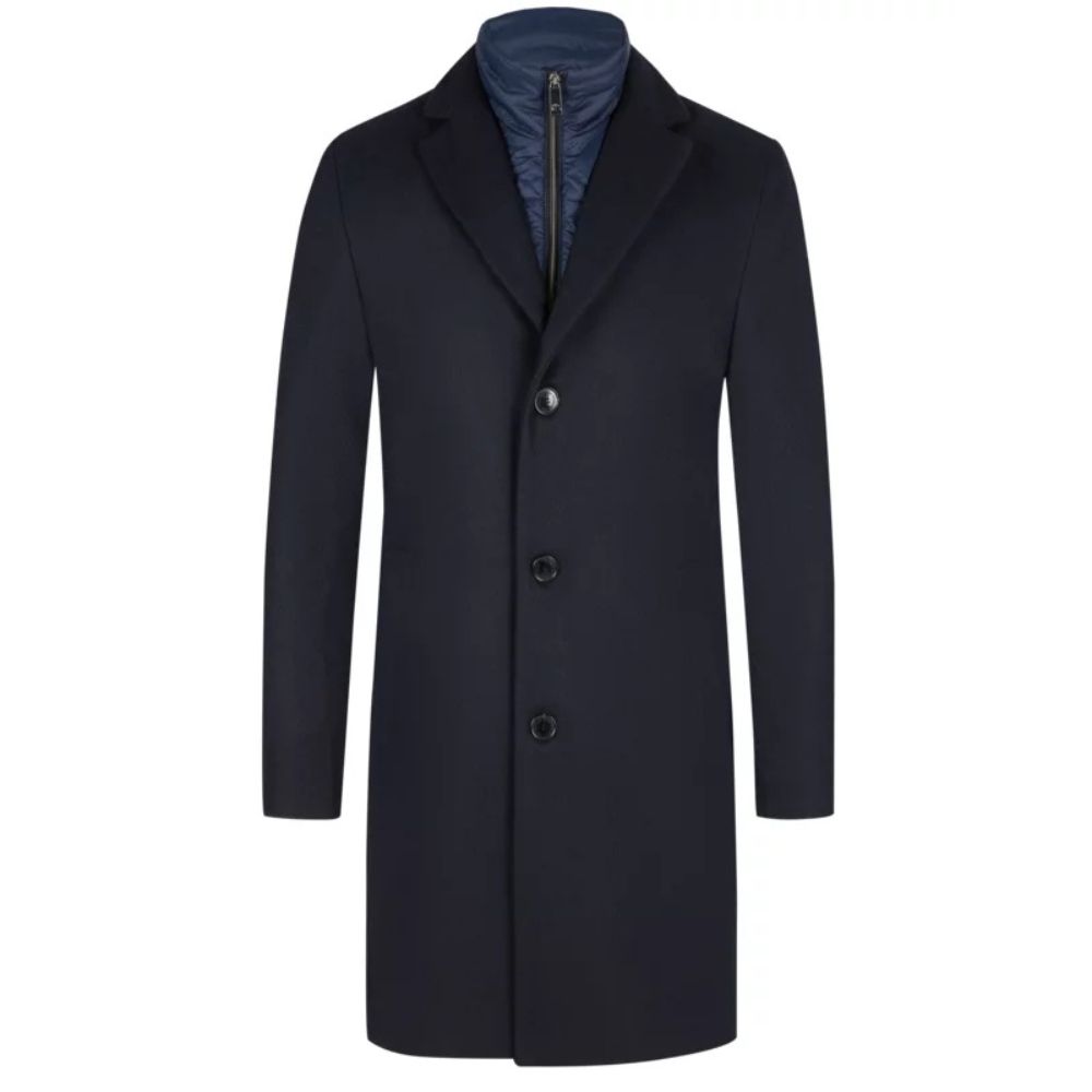 Blended 70% Polyester, 30% Viscose Navy Overcoat Perfect For the City