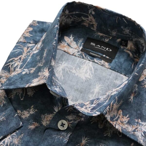 Casual fit (slim fit) short sleeve shirt with palm leaf print on cotton poplin.