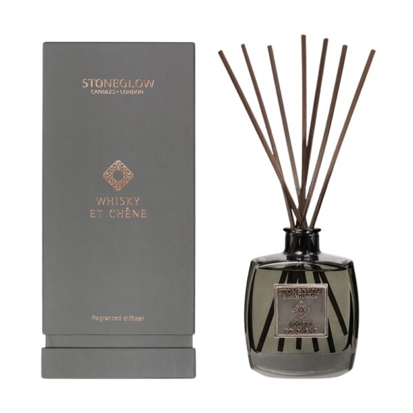 The Metallique Collection presents the indulgent aroma of the Whisky et Chene Reed Diffuser in a generous 200ml size, providing a long-lasting sensory experience that is both bold and sophisticated. Immerse yourself in a harmonious blend of fresh citrus notes that seamlessly intermingle with the decadent sweetness of figs and dates, creating a sensorial journey that evokes a luxurious ambiance in any space.