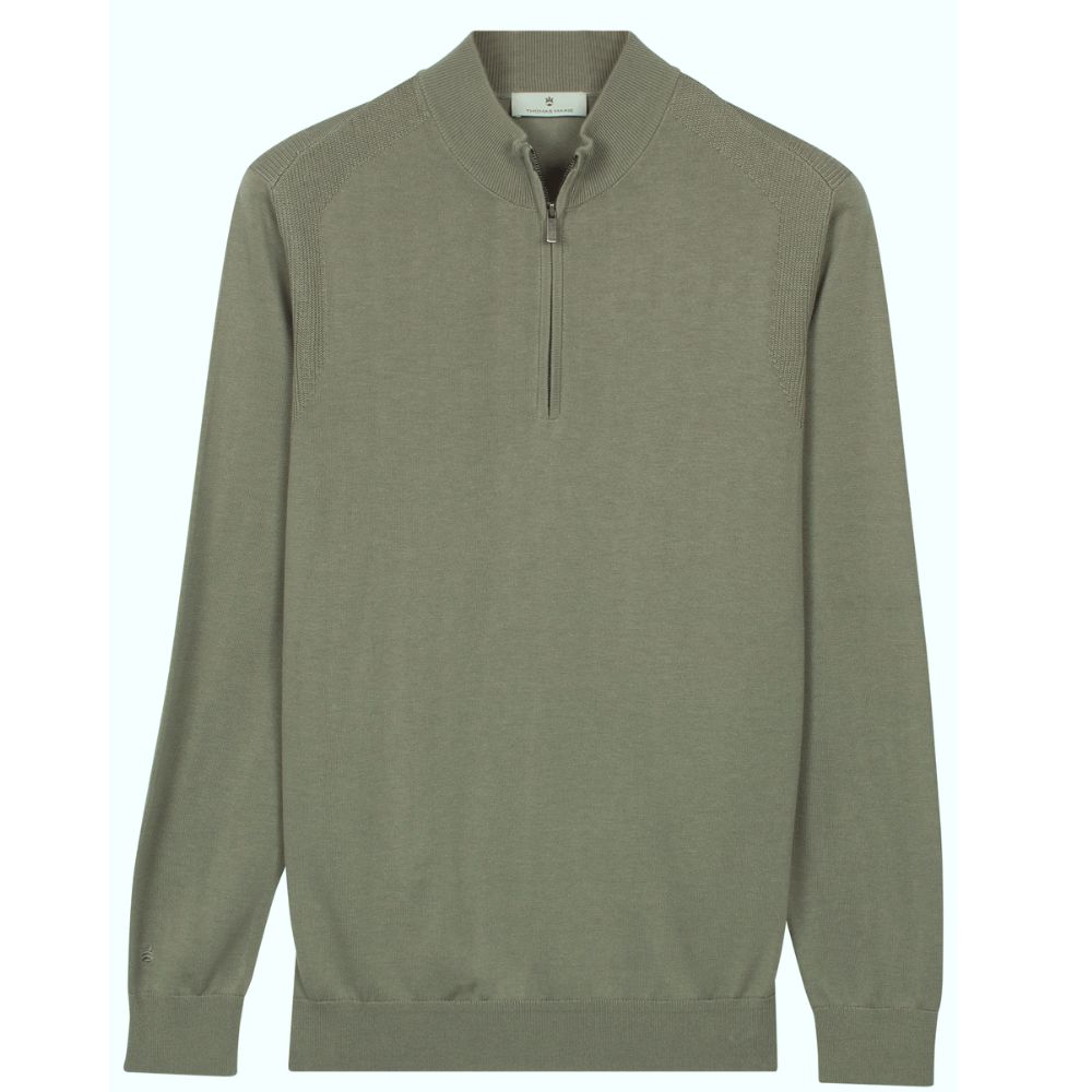 The Thomas Maine Cotton and Silk Blend Green Half Zip combines refined comfort with understated elegance. Crafted from a premium cotton and silk blend, it offers a soft, lightweight feel with a smooth finish. Featuring a half zip neckline for versatile layering, it’s a sophisticated choice for smart-casual wear.