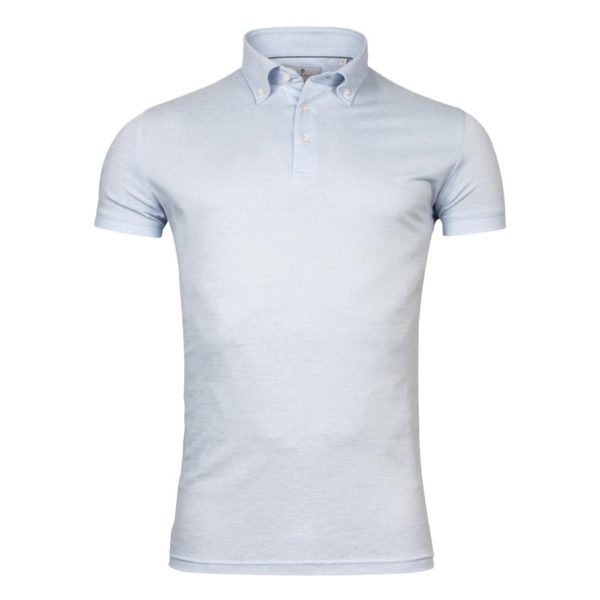 A slim casual polo shirt with tons of flair in soft and super comfortable jersey. This luxe knit material has a nice stretchy feel and a beautiful mélange effect. Featuring a button down collar giving it a casual look, great to wear with chinos or jeans depending on the event.