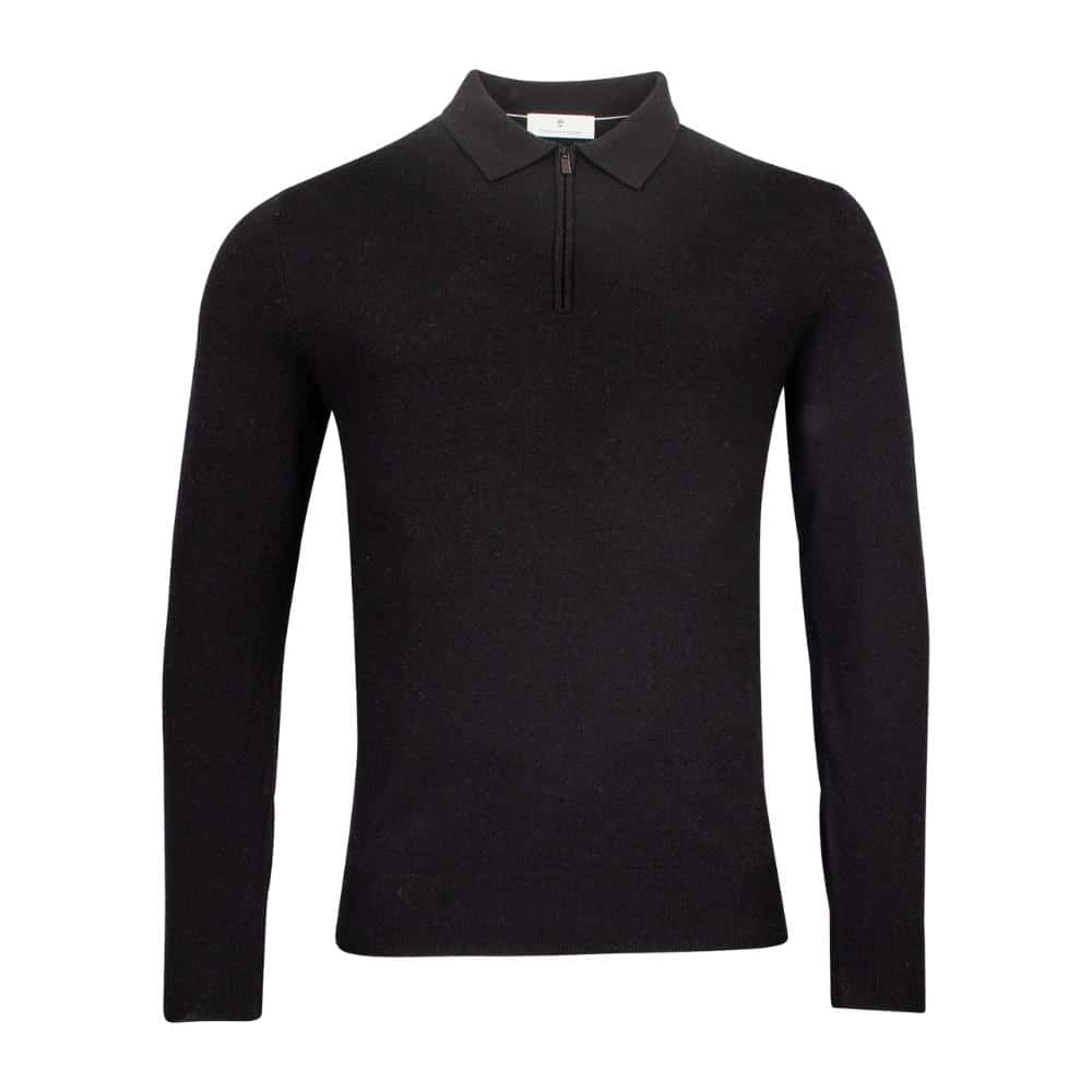 Thomas Maine Merino Wool Black Zip Collar Polo