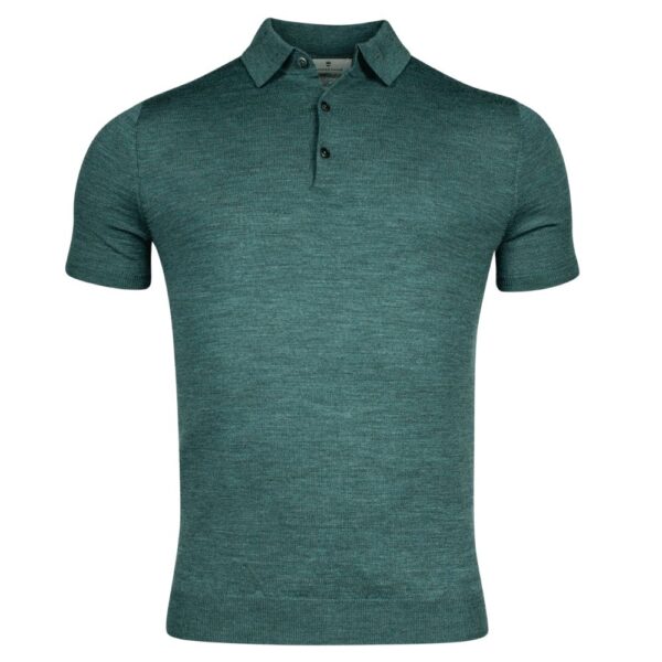 Thomas Maine knitted polo shirt is made with 100% merino wool, the polo offers a sumptuously soft handle and exceptional fit. Featuring a soft pointed collar, three button placket and ribbed trims for a close-cut silhouette, whilst the iridescent mother-of-pearl buttons add luxurious detail.